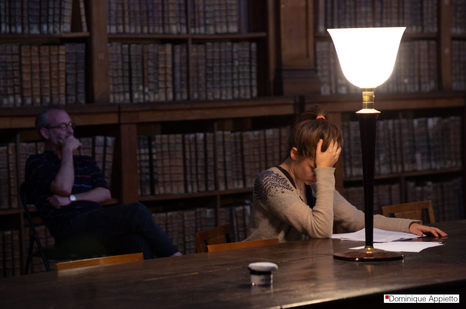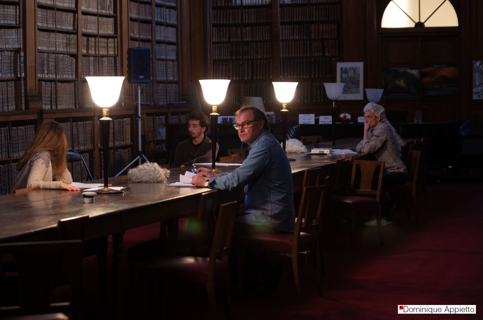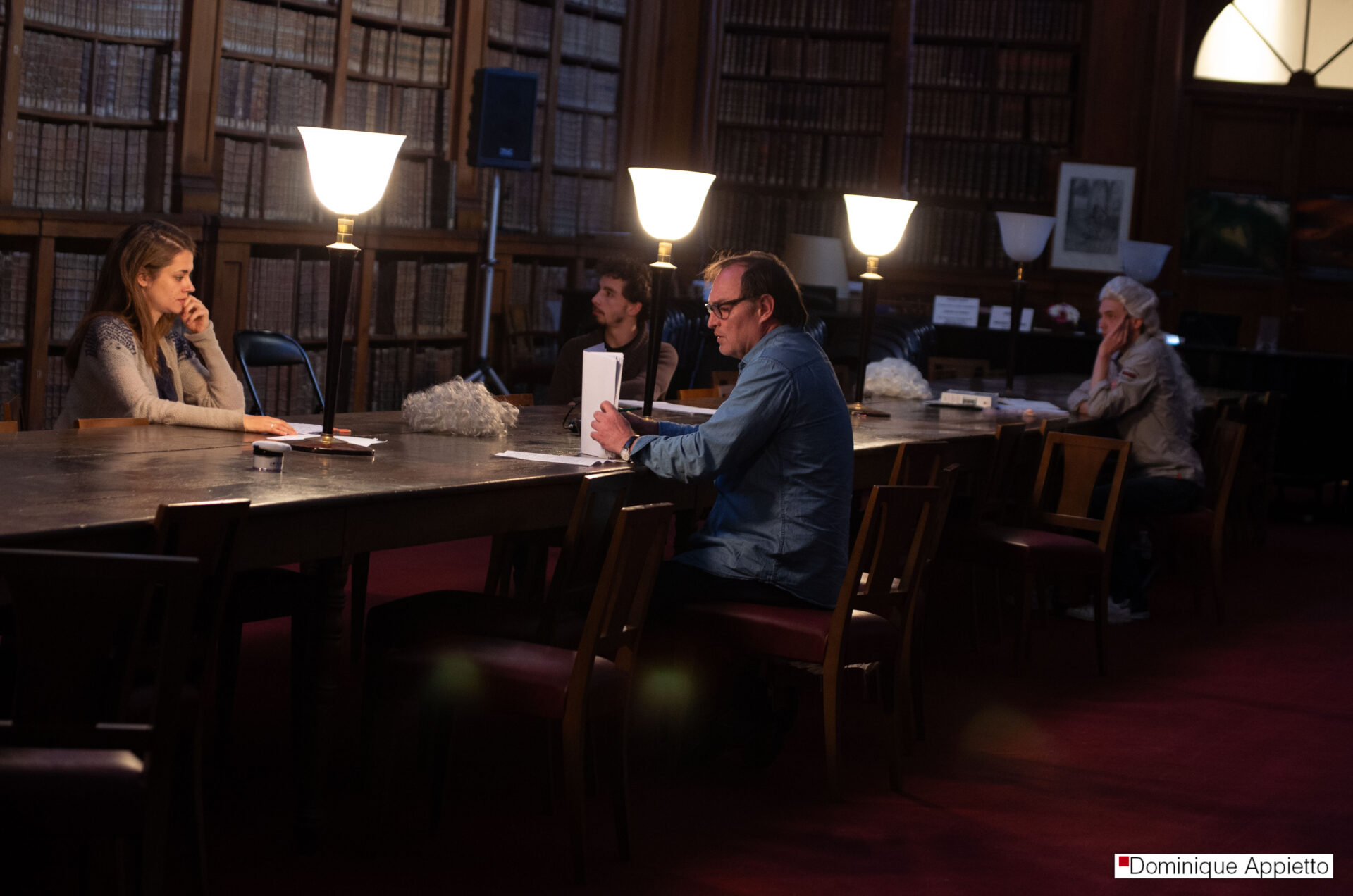 Mon travail sur le spectacle La mort de Danton dirigé par François Orsoni. Il s’agit de photos prises durant les répétitions. En les voyant, le comédien Jean Louis Coulloc’h m’a dit : « Toi, tu vas ailleurs ». Je me souvie,drait toujours de ces mots extrêmement touchants, car c’est là même que mon travail se situe.