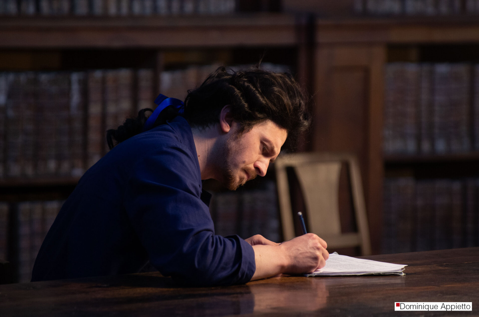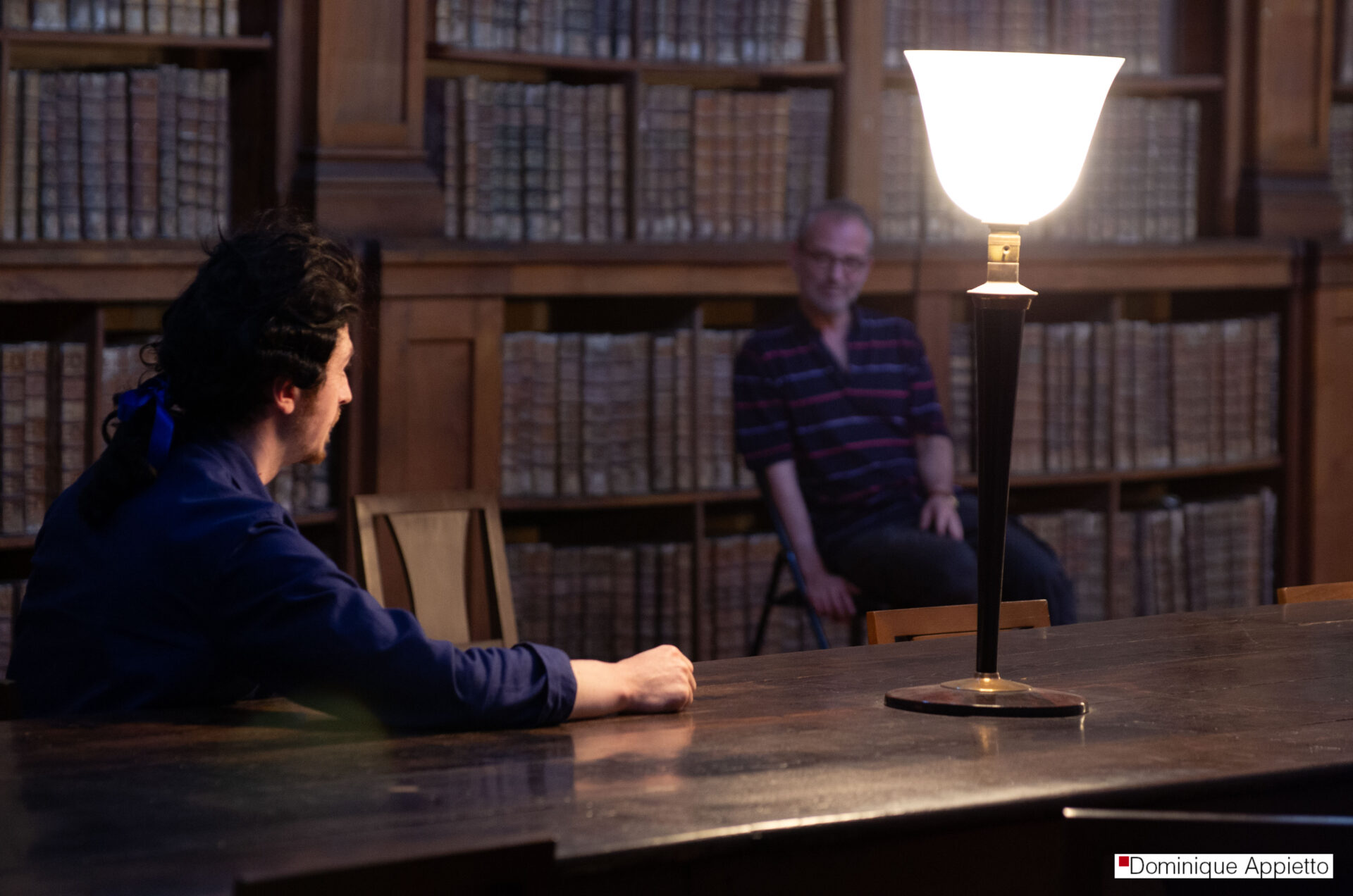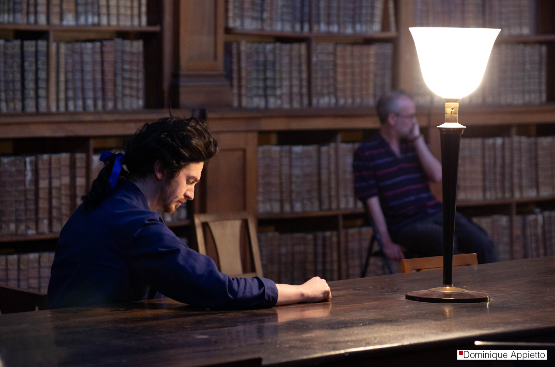 Mon travail sur le spectacle La mort de Danton dirigé par François Orsoni. Il s’agit de photos prises durant les répétitions. En les voyant, le comédien Jean Louis Coulloc’h m’a dit : « Toi, tu vas ailleurs ». Je me souvie,drait toujours de ces mots extrêmement touchants, car c’est là même que mon travail se situe.